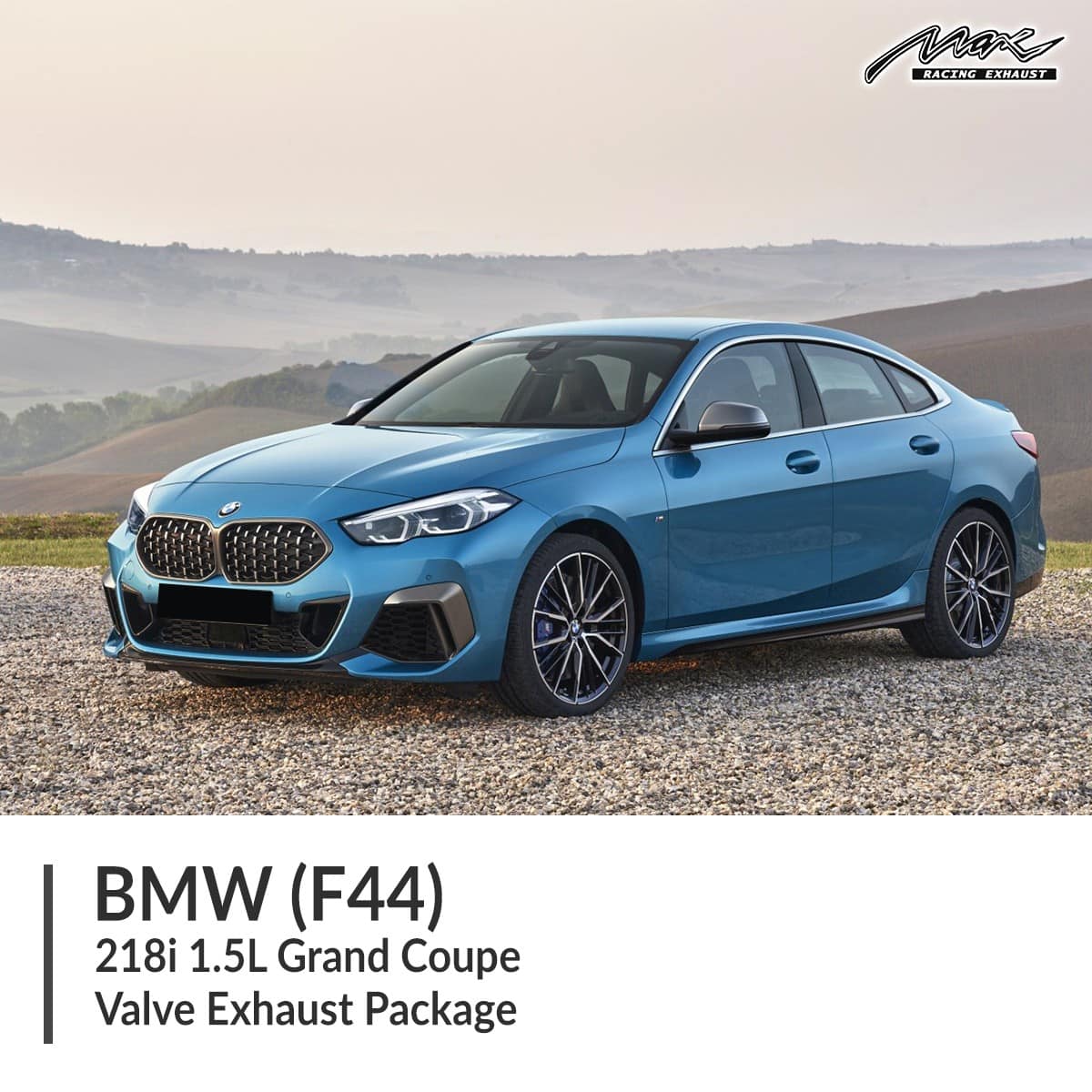 Max Racing stainless steel Valve Exhaust Series performance package for BMW F44 218i 1.5L Grand Coupe. Deliver dyno proven power with sound type switch function for moderate or loud exhaust sound.