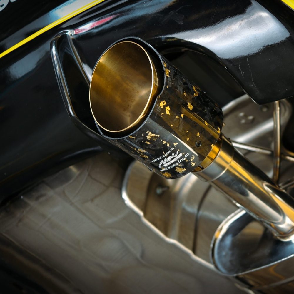 - Max Racing Exhaust gold forged carbon fibre tailpipe.